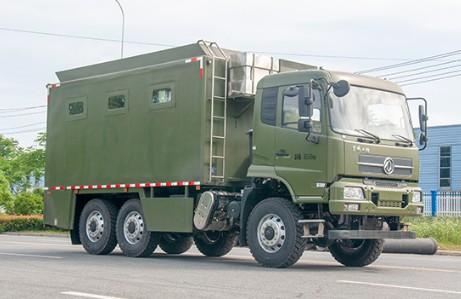 國六新款東風天錦六驅越野炊事車是在野外條件下烹制熱食的專用車輛。具有越野機動性好、作業能力強、自動化程度高、可在行進間展開炊事作業、受天氣候影響小、乘坐舒適等特點。