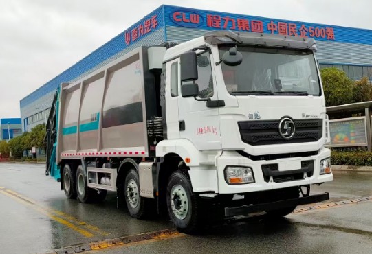 底盤配置: 陜汽德龍前四后八底盤,新M300平地板駕駛室,濰柴350馬力發動機,1950+3425+1400mm軸距,陜齒10擋變速箱,5.5噸曼前橋,11,5噸級曼后橋,1100鋼絲胎,300升鋁合金油箱,300雙層大梁,原廠空調電動玻璃,方向助力ABS等。 上裝配置: 功能介紹:箱體容積30立方,用作裝載生活垃圾,由密封式垃圾箱、填裝器、推鏟、液壓傳動系統和電氣控制系統組成。整車為全封閉型,采用電氣液一體化技術,借助機、電、液聯合自動控制系統,通過垃圾箱、填裝器和推鏟等專用裝置,實現垃圾倒入、壓碎或壓扁、強力提升裝填,把垃圾擠入車廂并壓實和推卸。壓縮過程中的污水全部進入污水廂,解決了垃圾運輸過程中的二次污染的問題,用戶可根據不同的垃圾收集方式,選裝不同的翻桶機構:翻標準垃圾鐵桶ZBT59003-88(300L)、塑料垃圾桶(240L)、塑料垃圾桶(660L)、也可以選裝三角斗,大落地斗垃圾斗、擺臂垃圾斗等翻轉機構。可以選裝氣動密封蓋。 1、陜汽德龍30立方壓縮式垃圾車箱體采用國標 邊5底6 厚Q345材質錳鋼板制作,圓弧形箱體,無筋條,底箱及填充器采用加厚鋼板,確保經久耐用。 2、壓縮式垃圾車尾部填裝機構可選裝7種樣式:掛塑料桶式翻轉機構、掛鐵桶式翻轉機構、擺臂式翻轉機構、簸箕斗式翻轉機構、大落地斗、小三角斗、無翻轉機構。 3、壓縮式垃圾車操作系統采用PLC一鍵控制系統,手電一體操作模式,尾部左右雙邊控制盒,帶駕駛室操作;液壓系統選用揚州中梅多路閥,合肥長源油泵,全車海普瑞斯(合資品牌)液壓油缸。 4、壓縮式垃圾車尾部和側部雙污水箱。