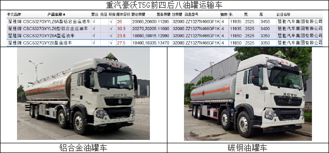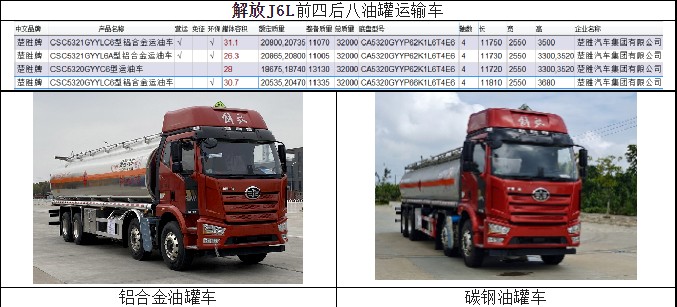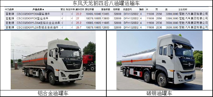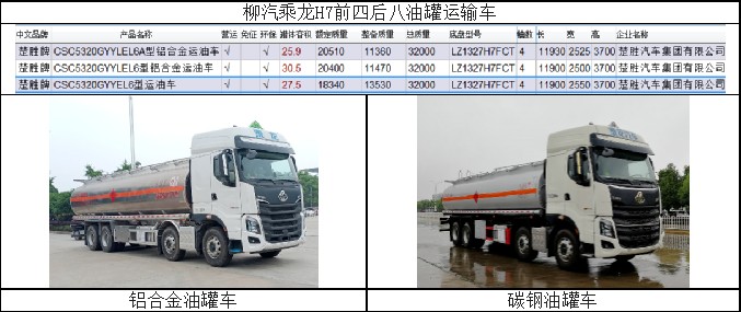 四.楚勝碳鋼與鋁合金罐體容積與整車(chē)尺寸參照表: