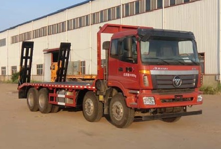 福田歐曼前四后八平板運輸車,采用ETX2490MM平頂駕駛室,濰柴300馬力發動機,豪沃10檔變速箱帶取力器,459(13噸)后橋,免維護后橋,1800+3050+1350MM軸距或者1800+3650+1350MM軸距,11.00R20鋼絲胎,真皮氣囊座椅,電動門窗,自動空調,遙控鑰匙,ABS,剎車自調臂,可調大燈,行駛記錄儀。